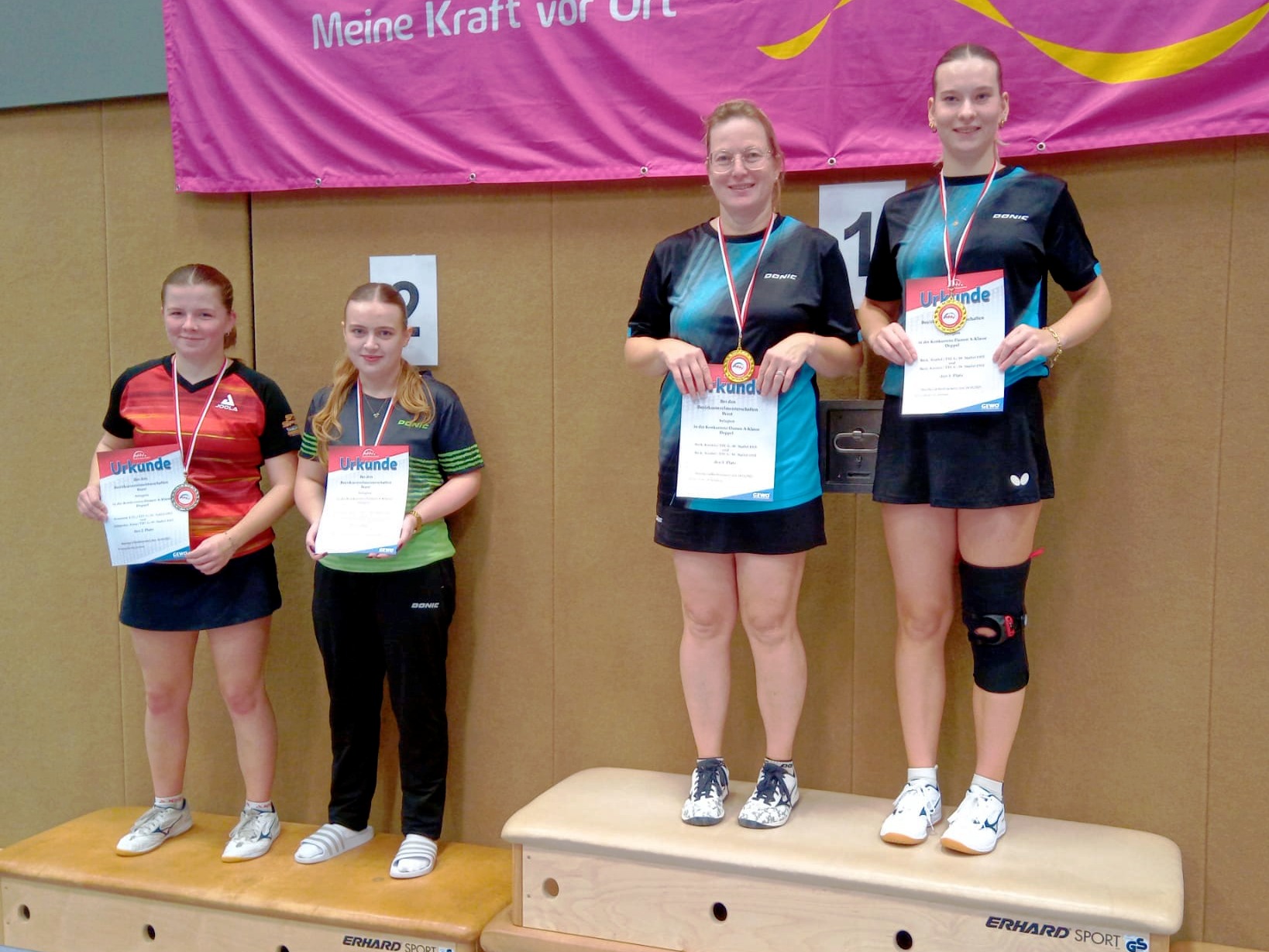 Anna Schneider, Lilly Armborst, Kerstin und Anabel Beck bei der Doppel-Siegerehrung