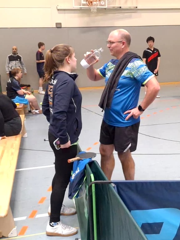 In ihrem letzten Spiel mussten unsere Damen auf Sally Elkaliny verzichten, für sie rückte Anabal Beck ins Team. Mila Niu/Kerstin Beck gewannen ihr Doppel, Mila Niu überzeugte mit 2 Einzelerfolgen an Brett 1 und mit dem Punkt von Kerstin, die in ihrem 2. Spiel die Nr. 2, Demchenko besiegte, erspielten unsere Damen im 1. Paarkreuz mit 3:1 ein Übergewicht. Im 2. Paarkreuz kam dagegen nur Carolin Beck zu einem Einzelerfolg, weil Carolin ihr erstes Spiel (9:11 im 5. Satz) und Anabel im letzten Spiel mit 12:14 im Entscheidungssatz das Spielglück fehlte. Mit einem ausgeglichenen Punkteverhältnis von 18:18 bleiben sie im oberen Tabellendrittel.