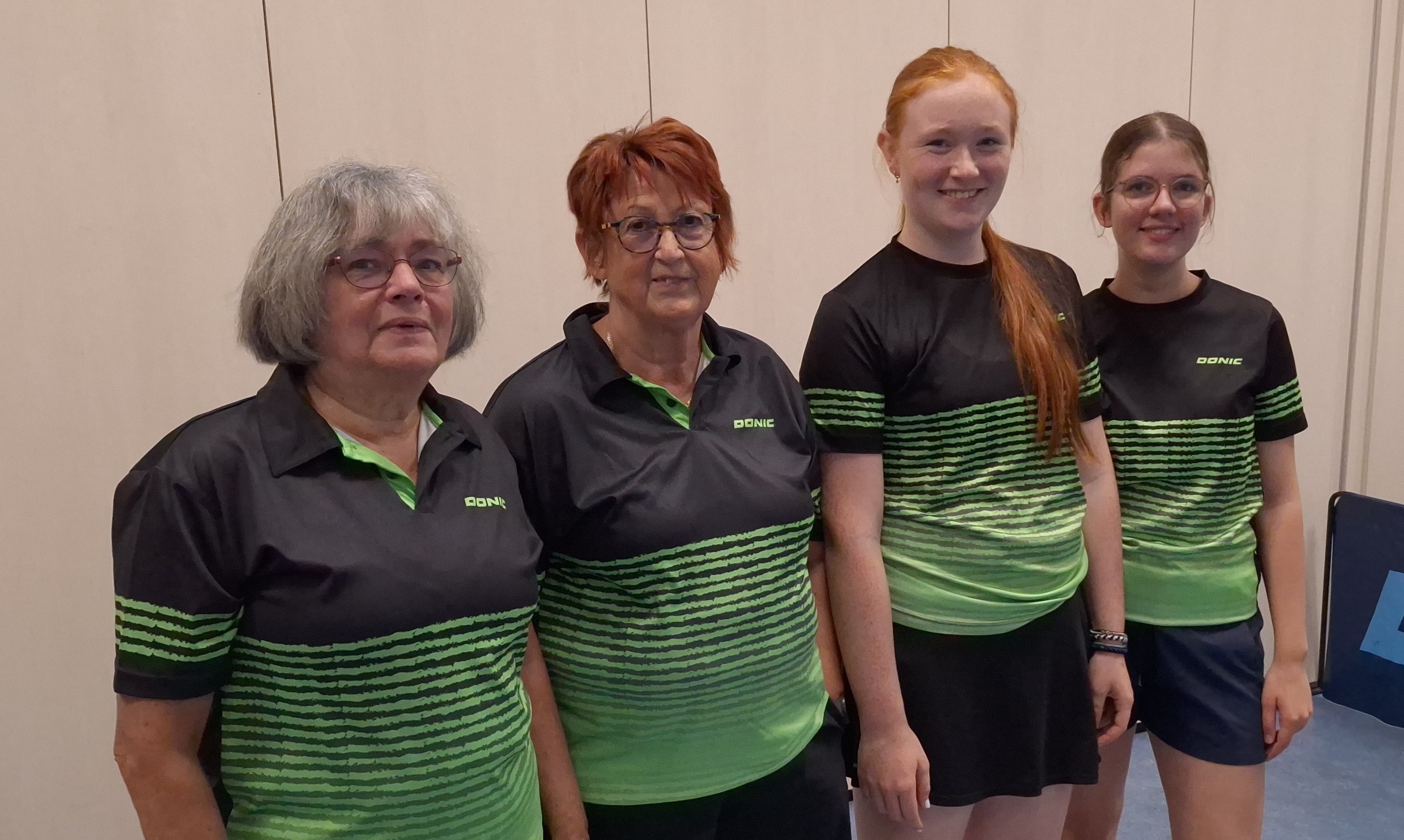 Sonja Bremser/Gisela Schmidt, Sonja (2), Finja Morgenstern und Svenja Weyand. Leider kämpften Gisela (11:13) und Finja (12:14) in ihren Entscheidungssätzen unglücklich. Leider, denn ein Sieg wäre durchaus verdient gewesen, wie das Satzverhältnis von 21:18 deutlich macht.