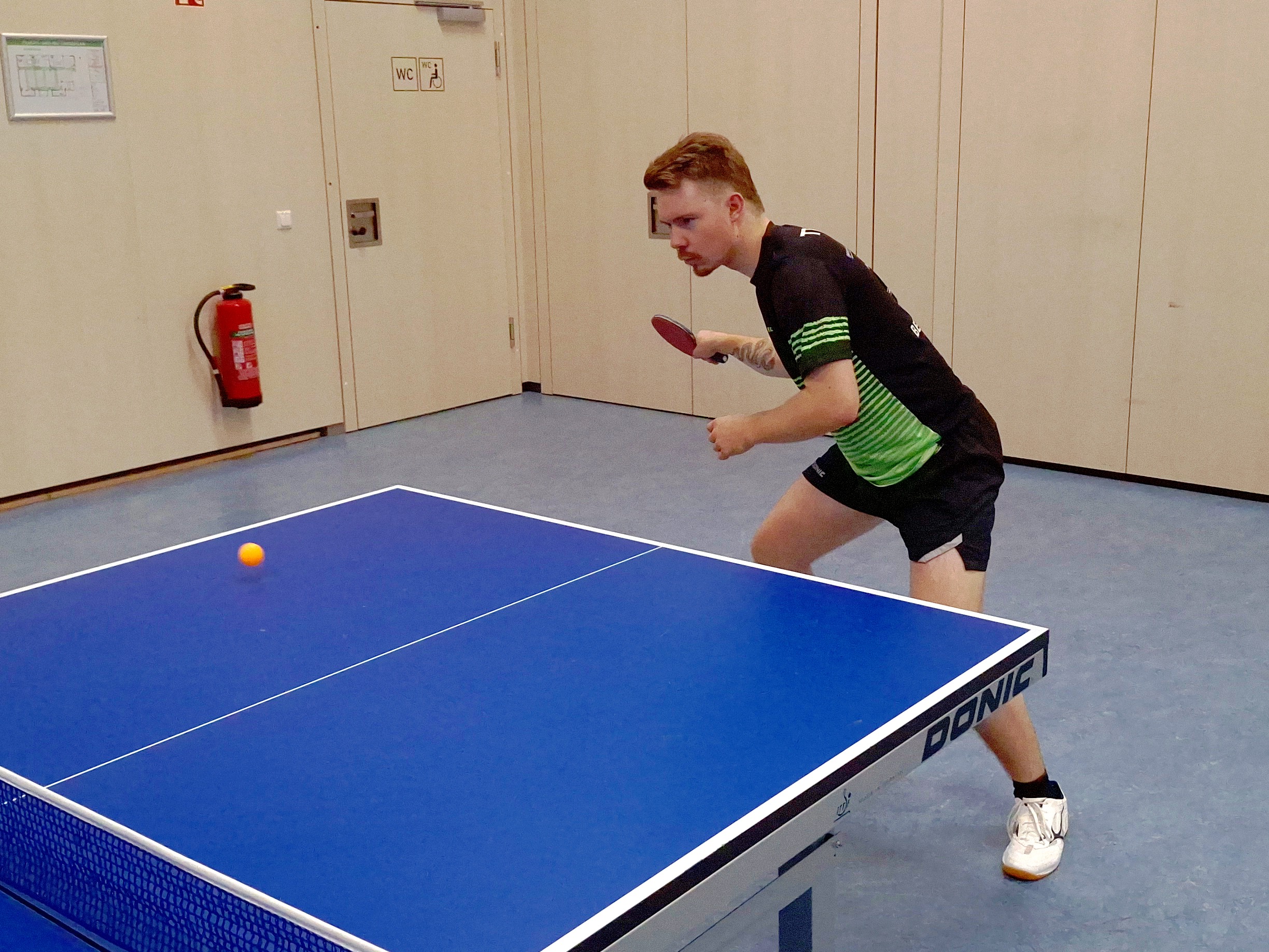 Und so starteten Jannis Reinhardt/Rokas Kisielius (3:0) und Andreas Nasdalak/Raphael Trost (3:1) hoch motiviert mit zwei klaren Siegen in die Doppel. Neuzugang Rokas zeigte in den Spitzeneinzeln seine Klasse mit 2 sicheren 3:1 Siegen, Andreas bezwang vorne nach 1:2 Rückstand die Gäste-Nr. 1, F. Kepper mit 11:8 im Entscheidungssatz. Kapitän Raphael ließ Hüter beim 3:0 keine Chance und Jannis in bestechender Form bog gegen Haßelmann einen 1:2 und 3:8 Rückstand im 4. Satz nervenstark zum 3:2 Sieg um. Alle staunten dann ungläubig, als dann die Ergebnistafel 7:0 anzeigte und der Sieg sicher war. Andreas unterlag dann noch Zulauf unglücklich mit 10:12 im Fünften, Raphael verlor gegen Haßelmann 1:3, ehe Jannis mit einem sicheren 3:0 gegen Hüter zum 8:2 Endstand punktete. Super (!), denn in der Relegation war unser Team mit 2:8 gegen die heutigen Gäste noch unterlegen.