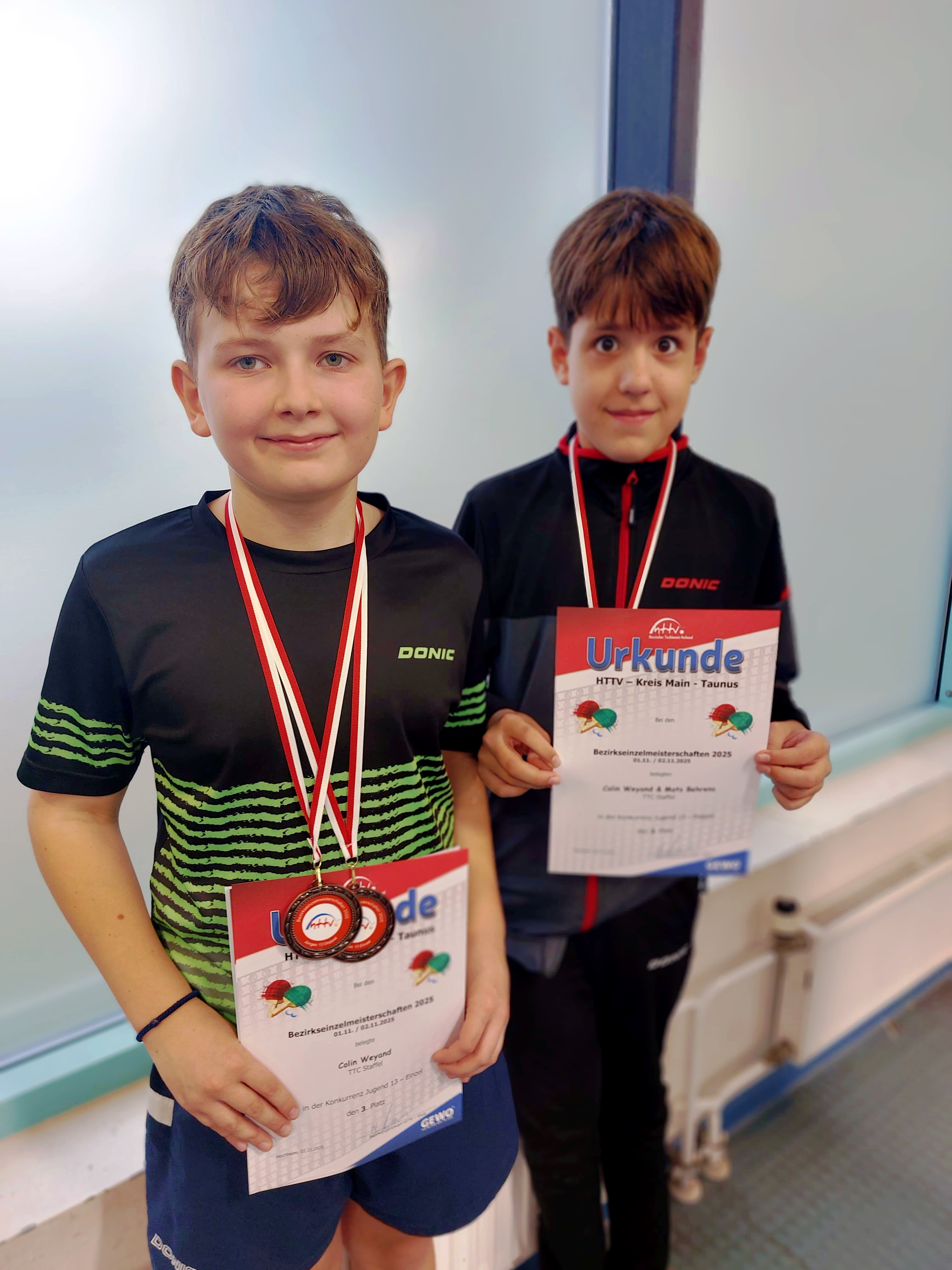 Colin Weyand und Mats Behrens nach der Siegerehrung im Jungen 15-Doppel