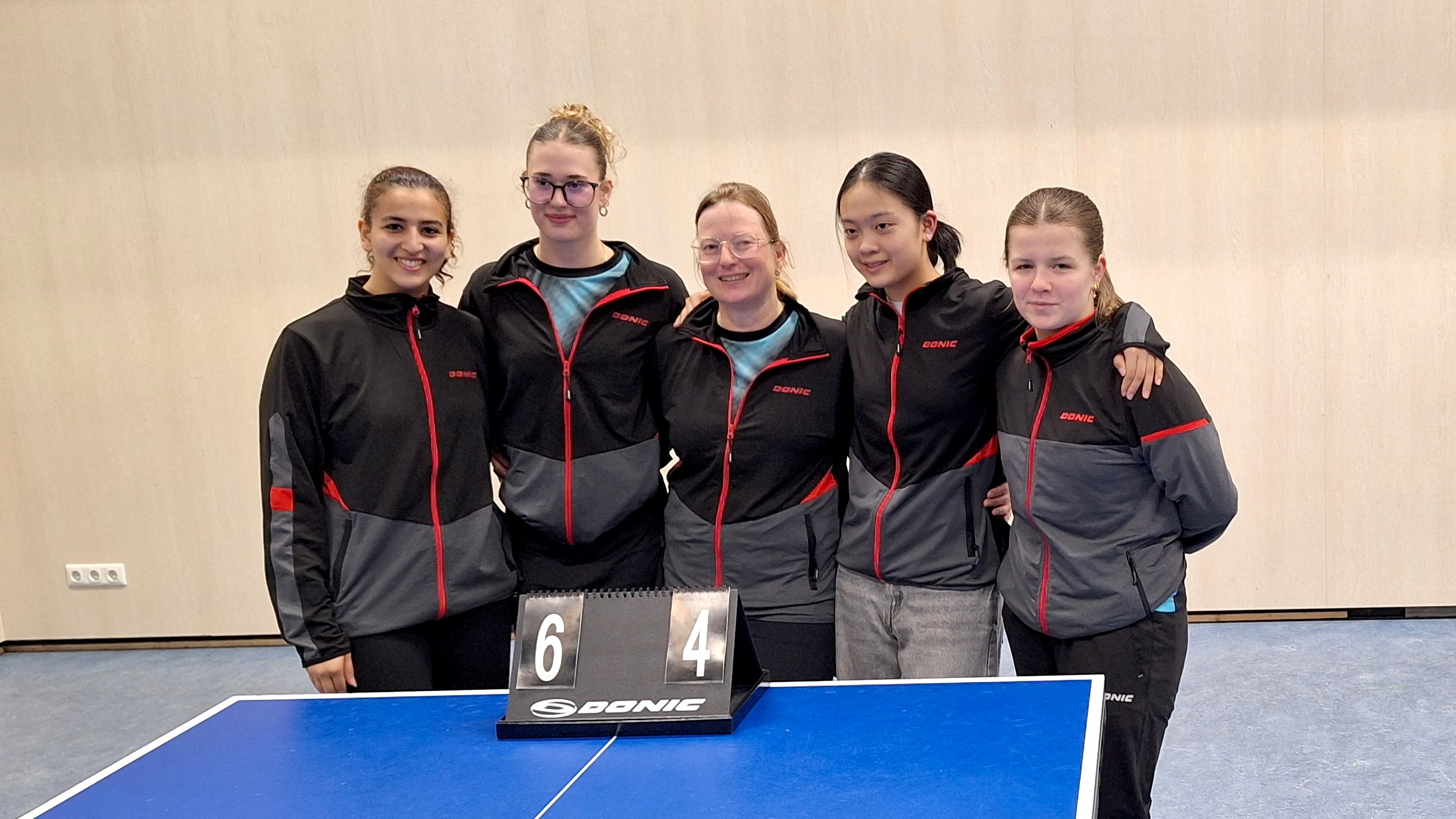 In den Doppeln gelang Mila Niu/Sally Elkaliny ein klares 3:0, Kerstin Beck/Lilly Armborst gelang gegen Nr. 1 und 2, Korzun/Bresic keine Überraschung (1:3) Die Überlegenheit mit 3 Punkten in den Spitzeneinzel durch Sally Elkaliny (2) und Mila Niu gaben letztlich den Ausschlag für den vielumjubelten 6:4 Sieg, den Kerstin und Carolin Beck mit jeweils einem Sieg gegen die Langener Nr. 4 Khan vollendeten. Damit hat unser Quartett bei noch einem Spiel mit 17:17 vorerst Platz 4 sicher und kann für ein weiteres Jahr in der Regionalliga planen.