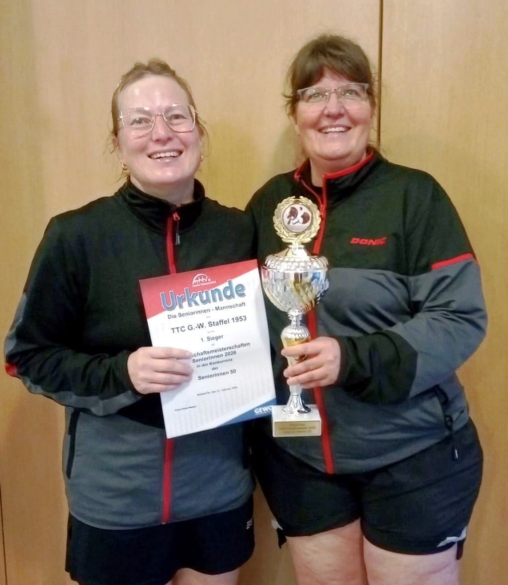 Kerstin (2) und Sabine dominierten das Finale klar, blieben in den Einzeln ungeschlagen, nur das Doppel wurde abgegeben. Sie setzten damit die Tradition unserer Seniorinnenteams fort und vertreten unser Bundesland am 2./3. Mai bei den deutschen Meisterschaften im Niedersächsischen Sittensen.