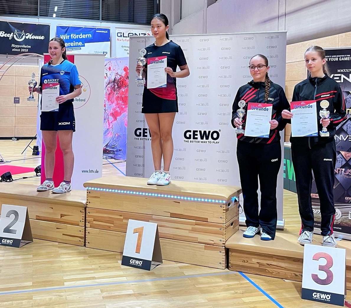 Sensationell die Silbermedaille von Lilly Armborst/Kira Brahm im Mädchen 19-Doppel, wo im Endspiel gleich 3 Staffelerinnen an der Platte um den Titel kämpften. Herzlichen Glückwunsch auch an Lilly und Kira!