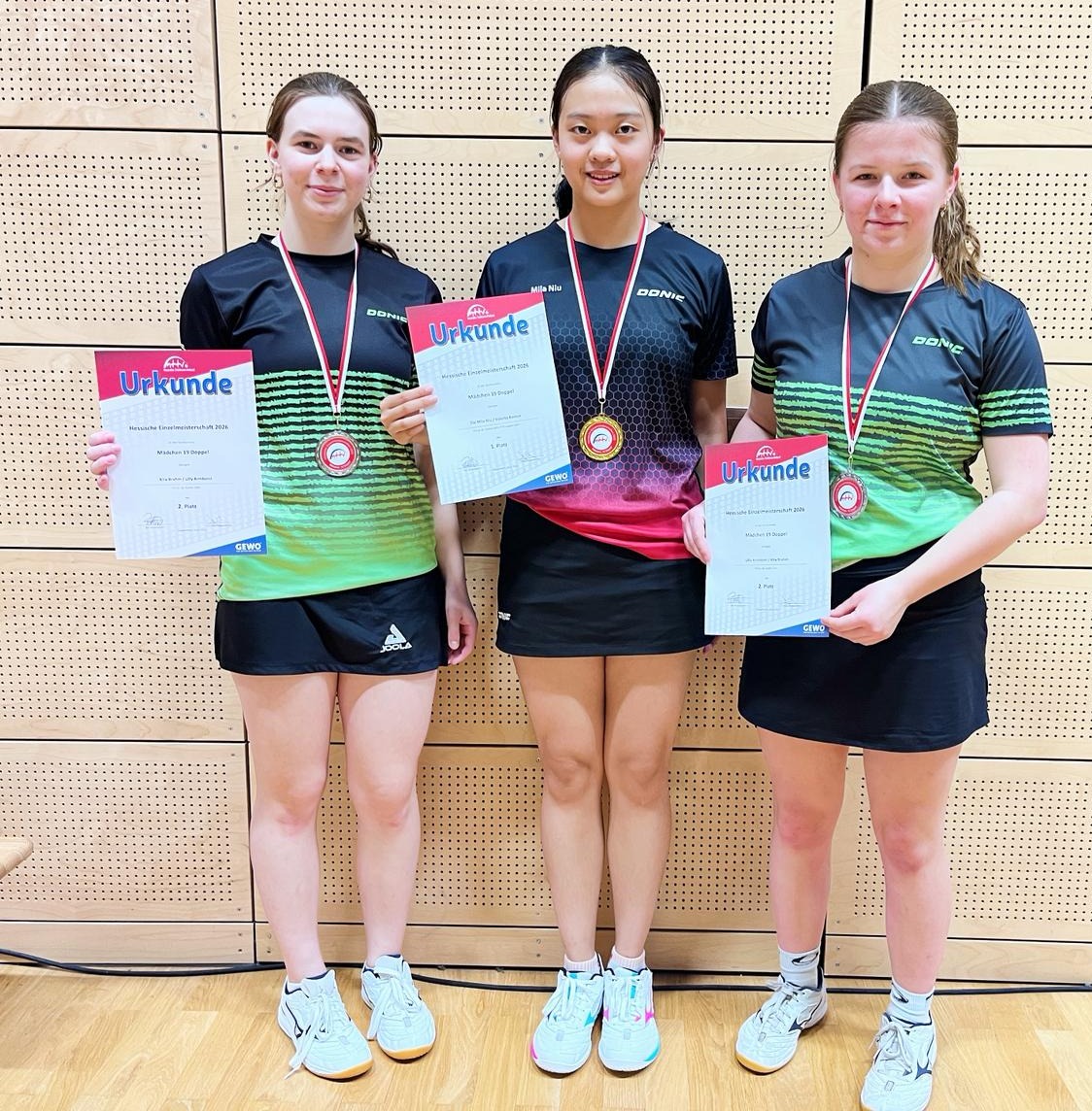 Mit Mila Niu, Kira Brahm, Lilly Armborst und Anna Schneider für Mädchen 19 und den Brüdern Milo und Colin Weyand bei den Jungen 13 haben sich gleich 6 unserer Nachwuchstalente für Hessischen qualifiziert, die am Wochenende in Heppenheim ausgetragen wurden. Ein Riesenerfolg für unsere Aktiven und eine tolle Bestätigung für die Arbeit des TTC-Trainerstabes und unseres Jugendwartes Luca Wolf. Und dann noch 3 mal auf dem Treppchen, was will man mehr!