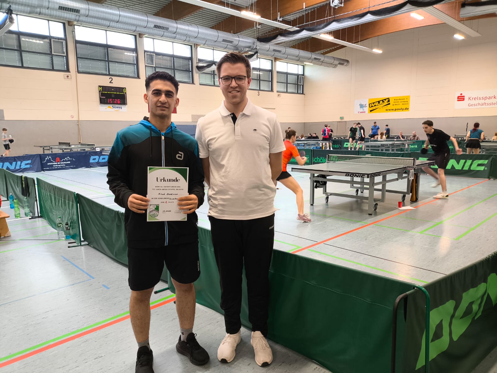 - Erwachsene A2: Aaron Stein (TTC Staffel) sicherte sich mit einer starken Leistung den Turniersieg in eigener Halle und Liam Schneider (TTC Eisenbach) erreichte mit Partner Michael Schulz (Königstein) den 2. Platz im Doppel