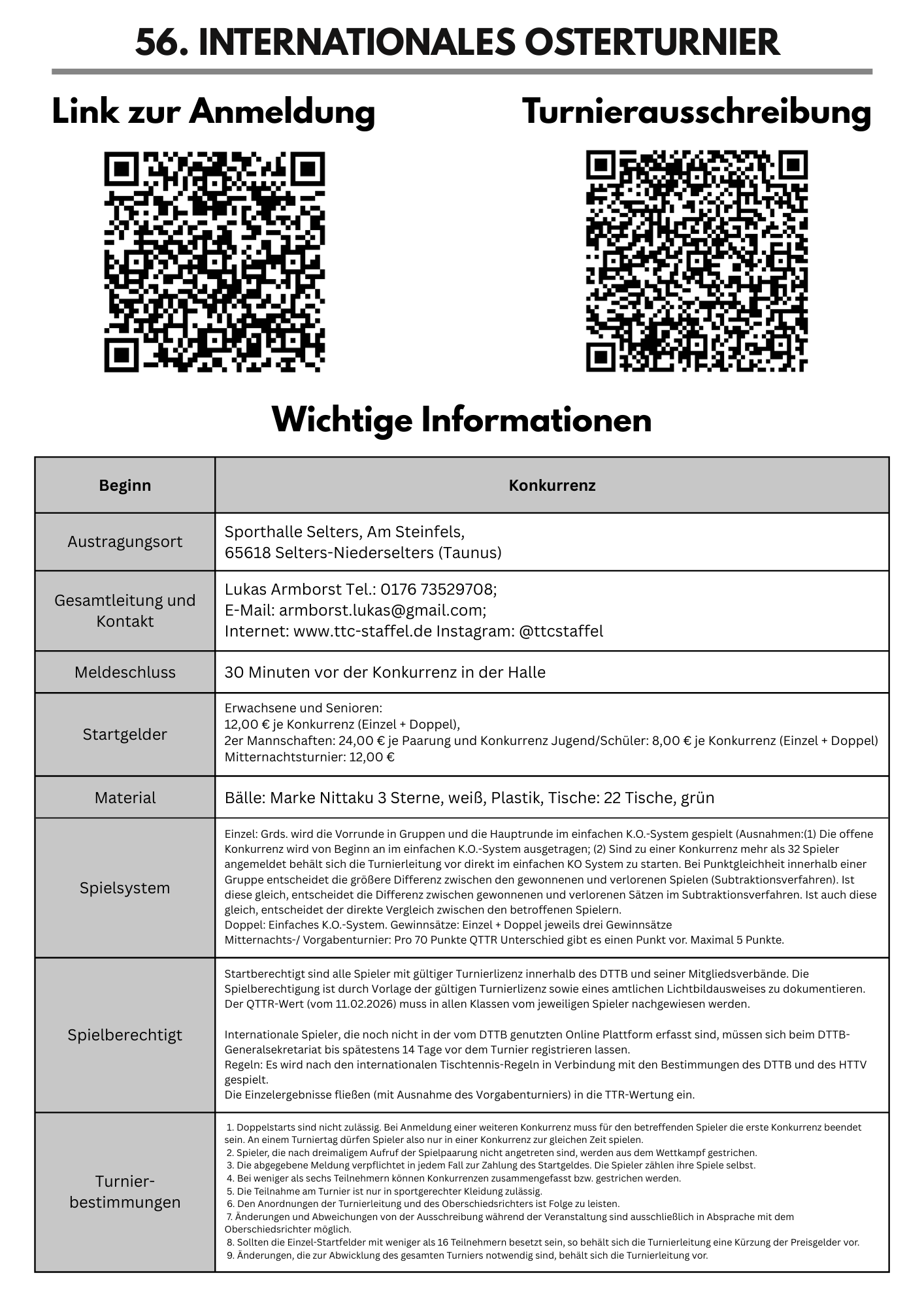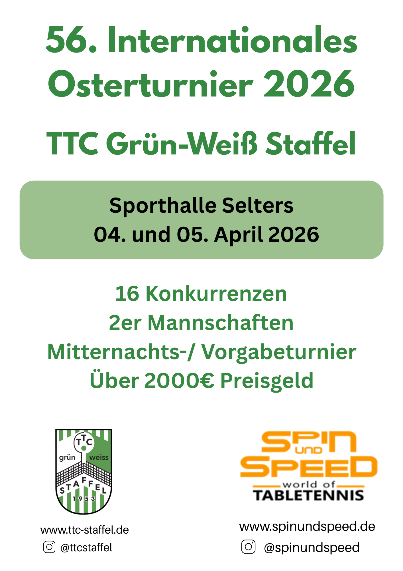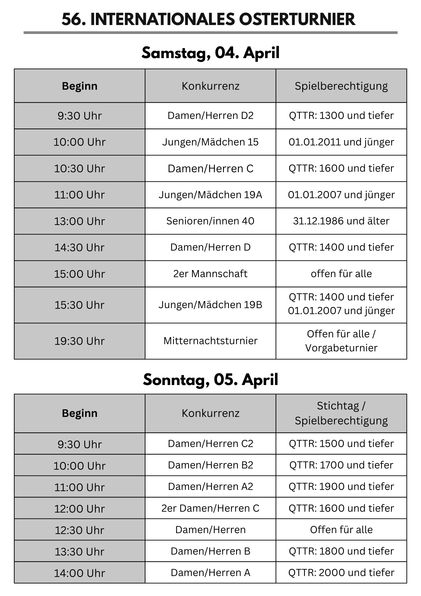 Es ist soweit, wir steuern auf das 56. Internationale Osterturnier zu.